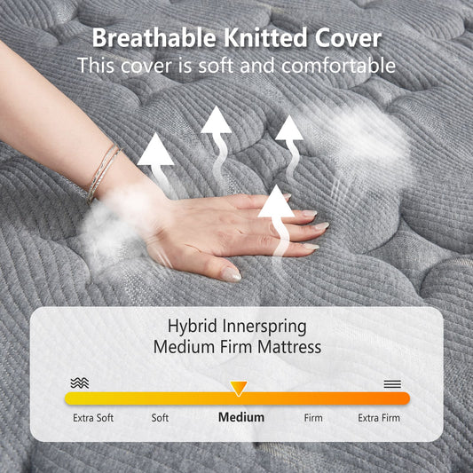 Newpearl Medium Firm Euro Top Mattress, Hybrid Gel Memory Foam, Pocket Spring, Gray